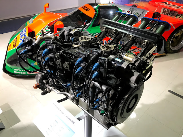 Now to blow the dust off a run through the Mazda factory in Hiroshima earlier last year; an all-too-brief moment spent with a sampler of Mazda back-catalogue highlights, and here specifically, some detail shots (although camera-phone "quality"..) of the absolutely iconic Mazda 787B - the April 1991 No.55 car that won the 1991 24 Hours of Le Mans.